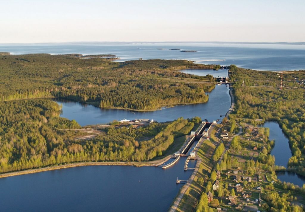 Самый короткий путь это заплыть в Белое море, держать путь до Онежской губы, и через Беломоро-Балтийский канал (построенный советскими инженерами еще до второй мировой войны), идем прямиком в Онежское озеро.