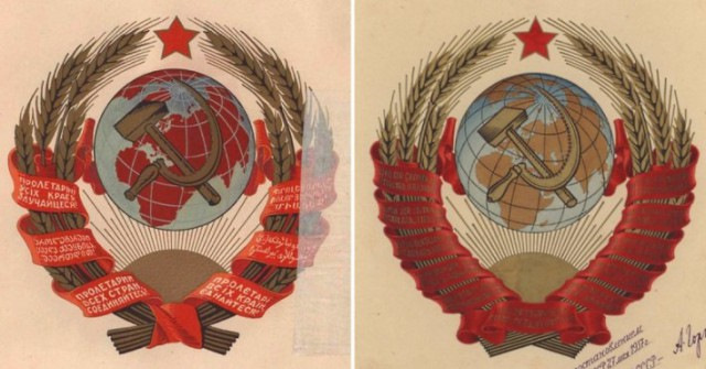 Герб Советского Союза, утвержденный в 1923 году, представлял собой серп и молот на фоне земного шара, в лучах восходящего солнца, обрамленный колосьями с девизом «Пролетарии всех стран, соединяйтесь!» на языках союзных республик. Казалось бы, этот символ изучался, тиражировался, висел на каждом официальном здании. Как в нем могла скрываться ошибка?