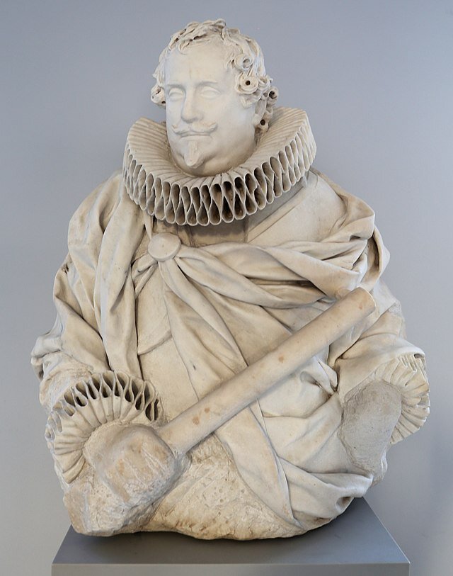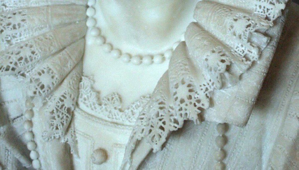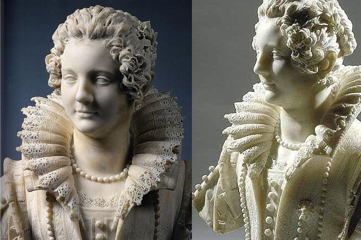 Это не единственный шедевр с таким гофрированным воротником из мрамора. Известны работы скульптора 17 века Джулиано Финелли, который создавал бюсты известных людей того времени. Вот несколько его работ.