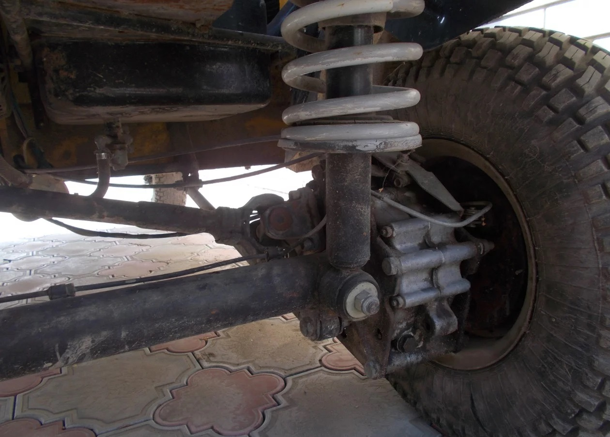 Карданный вал соединял коробку передач с задним межколесным редуктором. А сам этот редуктор монтировался на оси асимметрично, как и дифференциальный механизм.