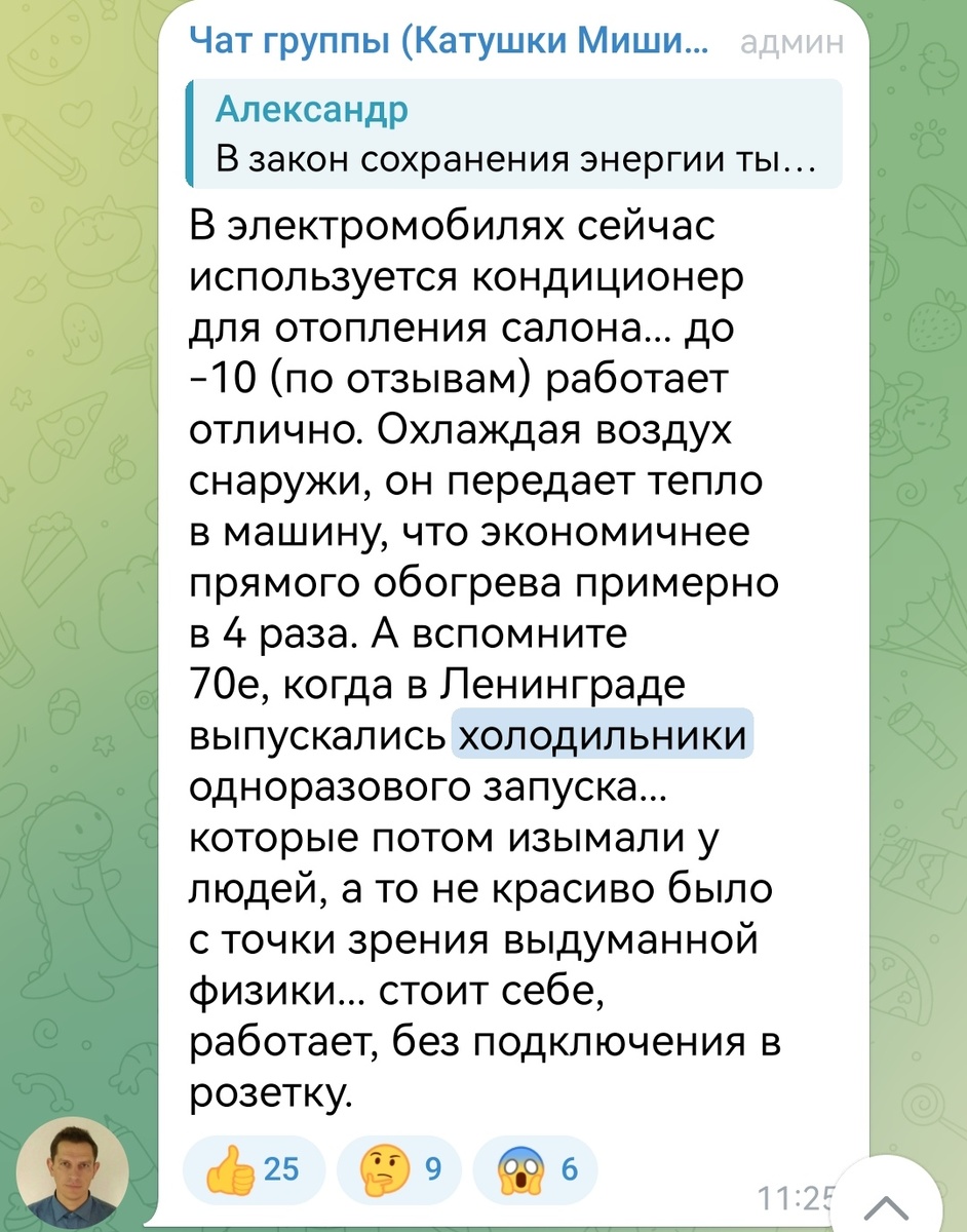 «Предлагаемый способ позволяет значительно снизить затраты энергии на привод холодильных установок …вплоть до создания установок, работающих без подвода энергии».