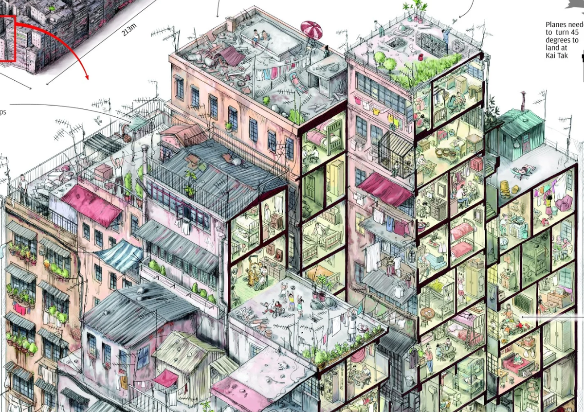 К 1987 году на каждый квадратный метр китайского микрорайона приходилось по полтора человека, сделав Коулун самым густонаселенным местом Земли.